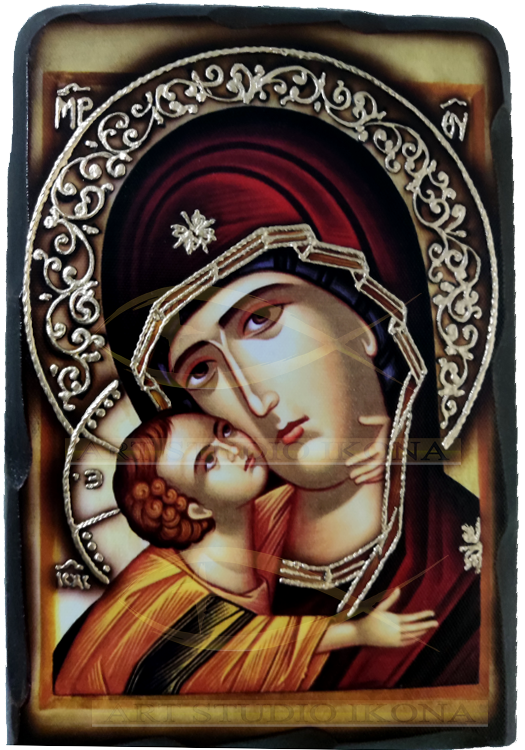 Рачно изработени икони на уметничко платно со пигментни бои, премачкани со UV лак за висока издржливост и заштита од надворешни влијанија, нанесени на дрво, оцртани и украсени со златни релјефни орнаменти изработени од искусен мајстор сликар. Автентични и ексклузивни византиски теми. VIP (Premium Luxury Unique)