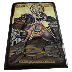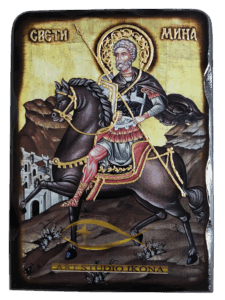 Saint Mina, also known as Minas or Menas, is a Christian saint and martyr. He is highly venerated in the Coptic Orthodox Church and is considered a powerful intercessor. Saint Mina is believed to have lived during the early 4th century in Egypt. He was a soldier in the Roman army but chose to declare his Christian faith openly, which led to his persecution and eventual martyrdom. Saint Mina is often depicted as a warrior saint, and his feast day is celebrated on November 11th in the Coptic Orthodox Church. His relics are housed in the Monastery of Saint Mina in Mariut, Egypt, which is a significant pilgrimage site for Coptic Christians seeking healing and blessings. Saint Mina is invoked for protection, healing, and miracles, and his intercession is sought by many believers facing challenges or in need of spiritual support